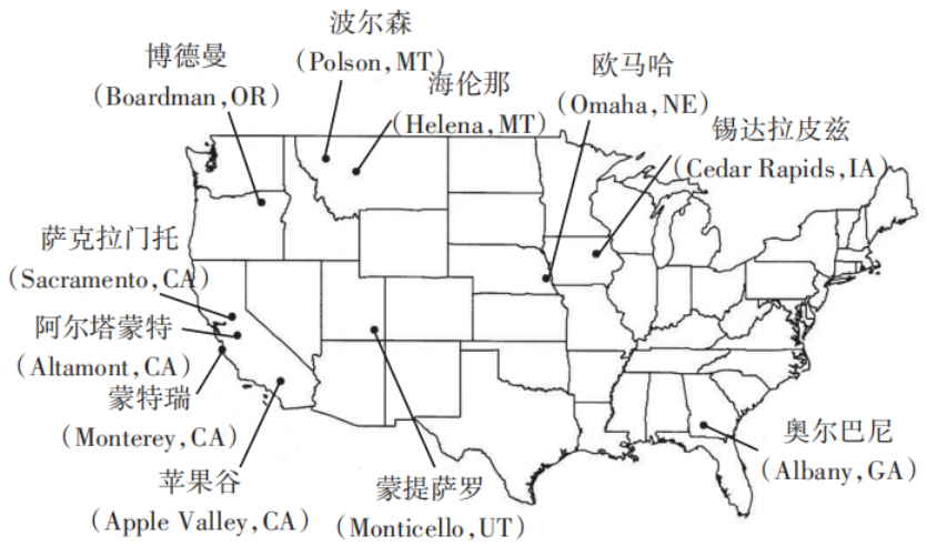 在對土質覆蓋層進行的現(xiàn)場試驗研究中,最具代表性的項目當屬US EPA資助的ACAP項目。該項目旨在評價替代型土質覆蓋層的現(xiàn)場防滲性能,并為替代型土質覆蓋層的設計、施工及后期維護提供必要的指導。ACAP項目于1998年啟動,先后在美國干旱、半干旱、半濕潤及濕潤地區(qū)的11個不同填埋場(圖7)建設了10個傳統(tǒng)阻斷型覆蓋層試驗基地和14個替代型土質覆蓋層現(xiàn)場試驗基地。通過對試驗基地的氣象條件、覆蓋層的徑流、側向導排、土層存儲以及滲漏等指標進行長達1~3 a的監(jiān)測,獲得了各試驗基地的水量平衡數(shù)據(jù),對比評估了替代型土質覆蓋層的適用性。ACAP項目的結果表明:在北美的干旱、半干旱和半濕潤地區(qū),單層騰發(fā)式覆蓋層與毛細阻滯覆蓋層的防滲效果與傳統(tǒng)阻斷型覆蓋層相當,而且二者能夠避免土體開裂引發(fā)的大規(guī)模滲漏行為。由此得出,生態(tài)型土質覆蓋層的防滲性能優(yōu)于傳統(tǒng)阻斷型覆蓋層。