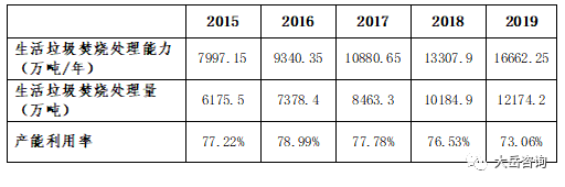 表 2近5年全國生活垃圾焚燒項目產(chǎn)能及利用情況