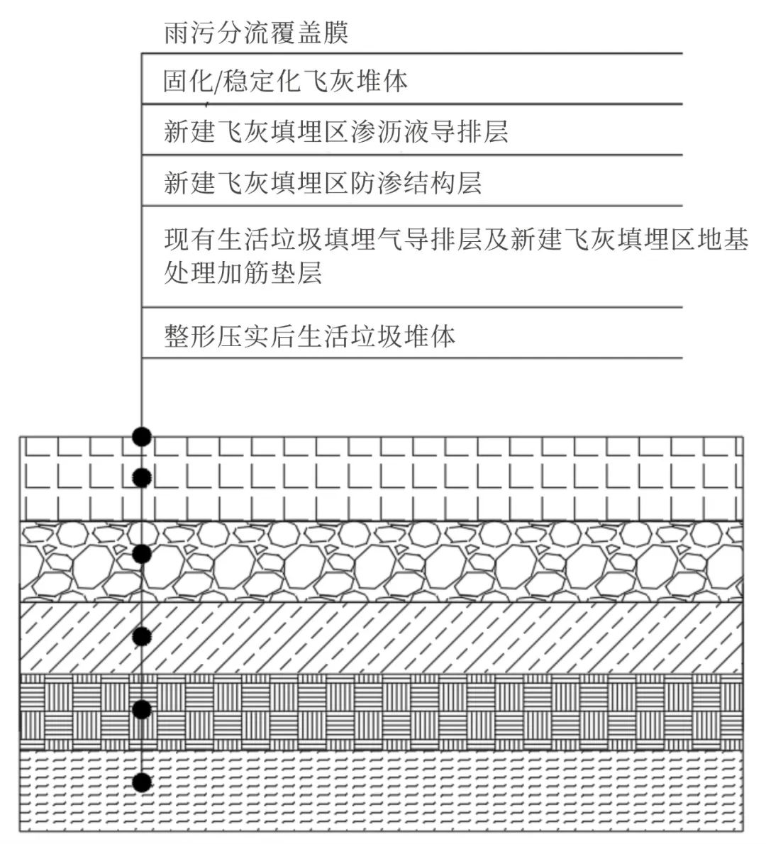 根據(jù)《生活垃圾填埋場污染控制標準》(GB 16889-2008)等相關(guān)標準要求,經(jīng)處理合格滿足入場條件的生活垃圾焚燒飛灰在生活垃圾填埋場中應(yīng)單獨分區(qū)填埋。固化/穩(wěn)定化飛灰當長期在生活垃圾產(chǎn)生的酸性滲瀝液浸泡下具有滲出有害物質(zhì)的潛在風險,故要求分區(qū)填埋。通過方案比選,異地處置和水平分區(qū)由于需要大規(guī)模的開挖、臭氣等環(huán)境影響更大、工程建設(shè)周期長、投資較高等較難實施,故本項目確定采用原位治理的垂直分區(qū)方案。固化/穩(wěn)定化飛灰與生活垃圾性質(zhì)完全不同,其密度大于生活垃圾,此外,生活垃圾堆體通常會隨著時間的推移發(fā)生沉降,并繼續(xù)產(chǎn)生填埋氣和滲瀝液,因此,如何確保固化/穩(wěn)定化飛灰入場填埋后填埋場的穩(wěn)定安全,是本項目擬解決的關(guān)鍵問題。
