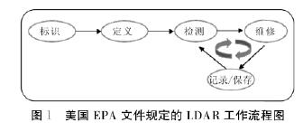 美國EPA文件《泄漏檢測與修復:最佳技術指南》指出,較為成熟的LDAR作業(yè)步驟可總結(jié)為圖1所示的5個工作流程,包括泄漏點定位、定義泄漏濃度、檢測組件、修復泄漏組件以及記錄保存。