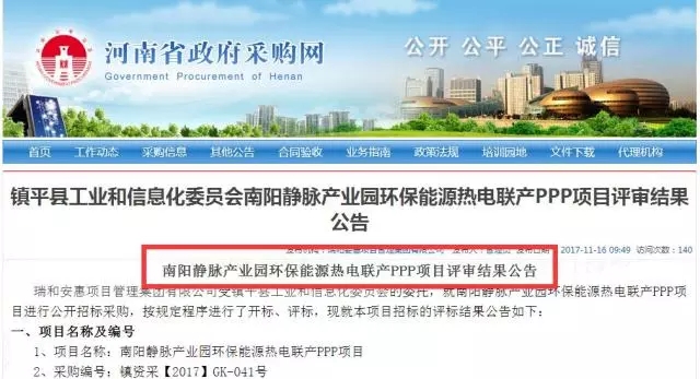 河南省政府采購網(wǎng)16日發(fā)布南陽靜脈產(chǎn)業(yè)園環(huán)保能源熱電聯(lián)產(chǎn)PPP項(xiàng)目評審結(jié)果公告,第一中標(biāo)候選人為上??岛悱h(huán)境股份有限公司。