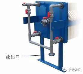 從壓濾機(jī)的示意圖可以看到,板框式壓濾機(jī)是由一張張濾板疊加而成的,濾板之間是有空間的,污泥注入這個(gè)濾板之間后,通過(guò)人工或者液壓的壓濾裝置,把污泥中的水分?jǐn)D壓出去,形成泥餅,擠壓出來(lái)的過(guò)濾液通過(guò)濾板上設(shè)置的濾出液管流出板框壓濾機(jī)外。