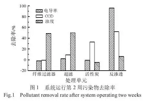 針對特種紙噸紙耗水量大、中水回用難度高的特點,采用纖維過濾器-超濾-活性炭-反滲透工藝,出水水質(zhì)兼顧了電導(dǎo)率和COD的雙重要求,達到了系統(tǒng)設(shè)計的預(yù)期目標(biāo)。出水濁度≤0.5 NTU,電導(dǎo)率≤100μS/cm,總懸浮固形物未檢出,COD≤20mg/L,正常運行費用2.62元/立方米。出水質(zhì)量滿足特種紙生產(chǎn)的需要,中水回用率達到80%,紙機生產(chǎn)和紙制品質(zhì)量不受影響。