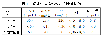 北京航天城污水處理廠是為北京航天工程服務(wù)的,根據(jù)北京航天工程環(huán)境評價報告書所列數(shù)據(jù),污水處理廠隨航天工程的發(fā)展分二期建設(shè),設(shè)計處理能力為7200m3/d,一期工程污水量為3600m3/d,主要包括工業(yè)廢水、生活污水和門診部污水,各自所占比例為1810%、8115%、015%,因此其污水主要是生活污水,污染物包括有機物、懸浮物和油類等。設(shè)計進、出水水質(zhì)及排放標(biāo)準(zhǔn)(北京市水污染物排放二級標(biāo)準(zhǔn))見表1。