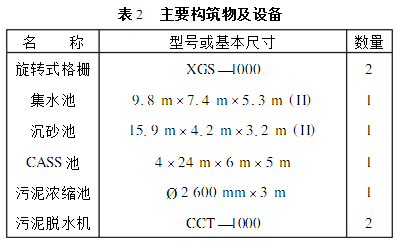 污水處理廠主要構(gòu)筑物及設(shè)備示于表2。