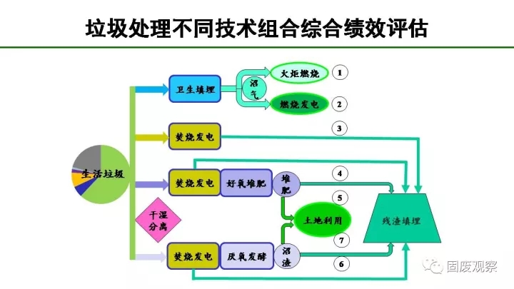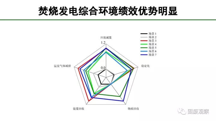 根據(jù)我們做的垃圾處理不同技術(shù)組合綜合績(jī)效評(píng)估,生活垃圾處理最理想的方式是通過(guò)焚燒、堆肥后最終讓垃圾回到土地利用,但是如果還無(wú)法為廚余找到土地回用出路的話(huà),焚燒是目前階段最適合的方法,其在垃圾減量、溫室氣體減排、能量回收和穩(wěn)定化四個(gè)方面的綜合評(píng)估都遙遙領(lǐng)先。