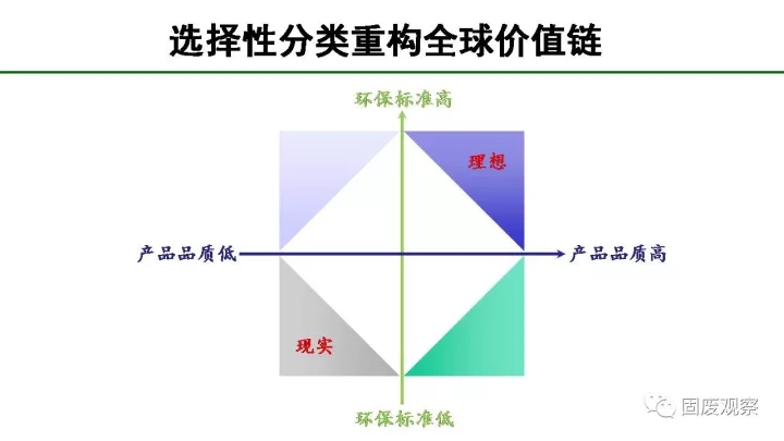 垃圾中的可回收物通常只能降級(jí)利用,產(chǎn)業(yè)集聚度和技術(shù)含量低,處于全球價(jià)值鏈的低端。如果我們僅把這些可回收物當(dāng)作資源來(lái)考慮,為什么發(fā)達(dá)國(guó)家將產(chǎn)業(yè)鏈最低端的可回收物出口到我們國(guó)家,這種不公平的全球價(jià)值鏈,我們應(yīng)該重構(gòu)!
