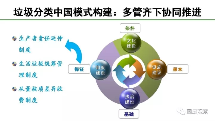 最后我們要多管齊下協(xié)同推進(jìn),我們要以法制建設(shè)為基礎(chǔ),以文化建設(shè)為條件,以制度建設(shè)為保證,以設(shè)施建設(shè)為根本。我也提出了三個(gè)制度去撬動(dòng)垃圾分類(lèi)工作,包括生產(chǎn)者責(zé)任延伸制度、生活垃圾統(tǒng)籌管理制度、從量按質(zhì)差異收費(fèi)制度。通過(guò)精巧的制度設(shè)計(jì),可以很好地撬動(dòng)垃圾分類(lèi)工作。