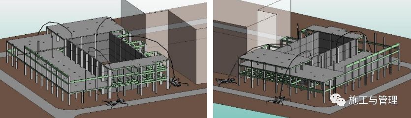 由于初步嘗試使用BIM 技術(shù)進(jìn)行施工技術(shù)管理工作,目前主要工作仍然是編制實(shí)際可行的施工進(jìn)度計(jì)劃,根據(jù)結(jié)構(gòu)三維模型進(jìn)行了初步建造模擬和部分專業(yè)的管線綜合。