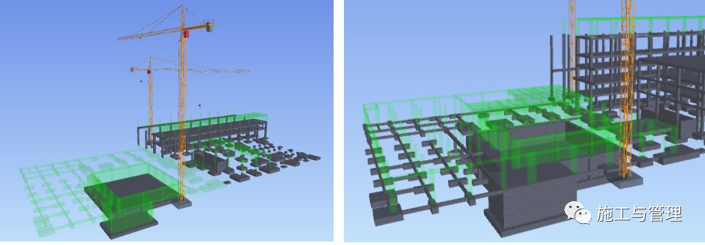 利用BIM軟件建立項(xiàng)目3D總平面布置,模擬施工車輛的進(jìn)出路線,安全措施及安全維護(hù)。建立結(jié)構(gòu)模型進(jìn)行施工工期模擬,對(duì)各專業(yè)之間的管線綜合和碰撞檢查,在三維視圖情況下,完成實(shí)際工況模擬及垂直運(yùn)輸工具的布置,優(yōu)化施工專項(xiàng)方案、深化設(shè)計(jì)的應(yīng)用等,為項(xiàng)目施工規(guī)劃及部署創(chuàng)造有利條件,促使項(xiàng)目在施工準(zhǔn)備階段做到布局合理、先進(jìn),經(jīng)濟(jì)。