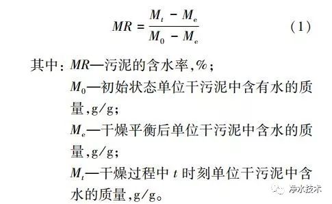 污泥失水的快慢用干燥速率DR[g/(g?s)]來表示,如式(2)。