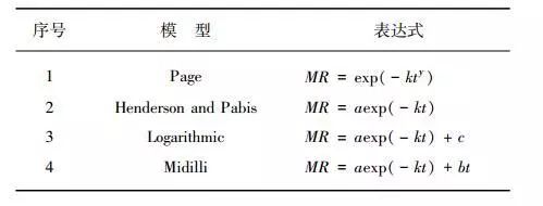 2.3.1干燥模型常見的污泥薄層干燥模型如表1所示。