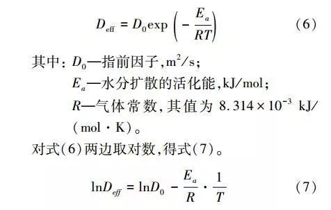 活化能根據(jù)Arrhenius公式,建立有效擴散系數(shù)與干燥參數(shù)間的關系,如式(6)。
