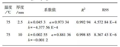 表2為2.5 mm污泥150 m干燥失水曲線擬合結(jié)果。由表2可知,Midilli模型的相關系數(shù)R2數(shù)值最接近1,且殘差平方和RSS最小,因此Midilli模型能較好地模擬出污泥薄層干燥的失水情況。與王靜靜等含油污泥薄層干燥研究的試驗結(jié)論相同。表3為不同條件Midilli模型的擬合結(jié)果。
