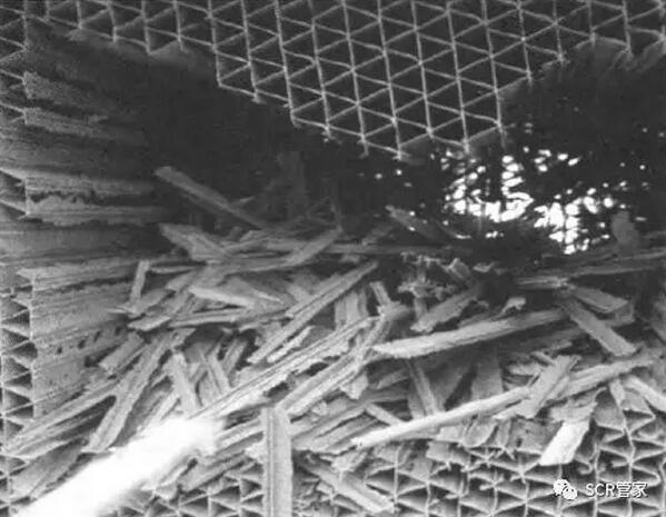 高溫煙氣攜帶大量顆粒物進入SCR反應器與催化劑發(fā)生碰撞,在“馬格努斯效應”下將使催化劑壁厚逐漸減小而造成磨損,甚至導致催化劑的坍塌,如圖1所示。催化劑磨損與流場分、煙氣特性、飛灰特性等因素有關。