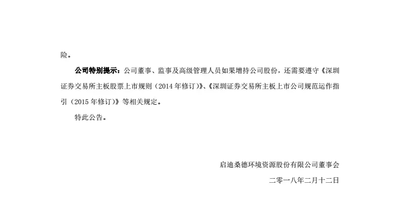 今2月11日,啟迪桑德發(fā)布一則重磅公告,基于對(duì)公司未來(lái)持續(xù)發(fā)展的信心以及對(duì)公司管理團(tuán)隊(duì)的信任,為維護(hù)市場(chǎng)穩(wěn)定,增強(qiáng)投資者信心,鼓勵(lì)長(zhǎng)期價(jià)值投資,文一波董事長(zhǎng)以個(gè)人名義向公司全體員工發(fā)出倡議書。