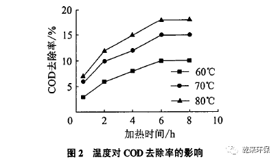 2.1加熱破乳:移取廢乳化液150 mL置于250 mL錐形瓶中,直接水浴加熱60。C、70℃、80℃,分別加熱0.5,2,4,6,8 h,然后靜置I h冷卻后取錐形瓶底部溶液10mL,稀釋50倍測(cè)定數(shù)據(jù),觀察破乳效果,試驗(yàn)結(jié)果如圖1、圖2所示。