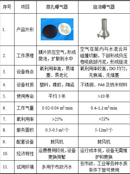 3. 旋流曝氣器與微孔曝氣器對比