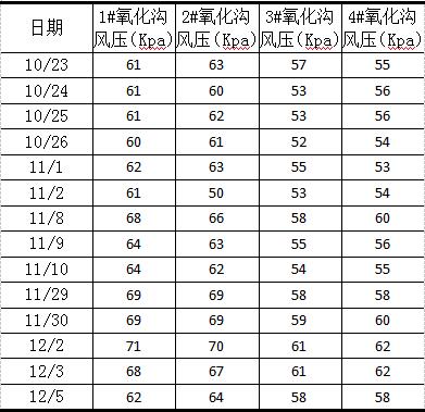 表2 各氧化溝運行風壓數(shù)據(jù)