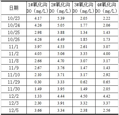 本項目于2017年9月底正式完成改造工程。其中1#、2#氧化溝采用了停水清池,底部安裝固定的方式,安裝了新的微孔曝氣器,3#、4#氧化溝采用了帶水作業(yè)的方式,安裝了新的旋流曝氣器。具體運行數(shù)據(jù)見表2、 表3。