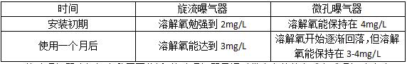 表1 微孔曝氣器與旋流曝氣器性能對比