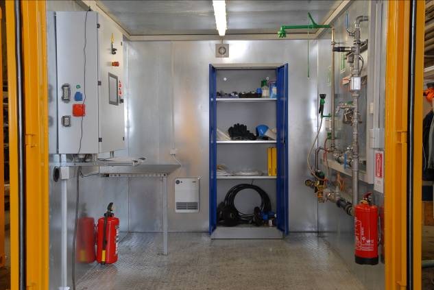 圖10: 原位化學(xué)及原位生物修復(fù)站。由兩個(gè)十尺小集裝箱組成,可機(jī)動(dòng)靈活布置。自動(dòng)控制。可自動(dòng)投加不同藥劑。