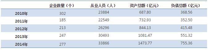 表1 2010-2014年中國(guó)污水處理行業(yè)規(guī)模以上企業(yè)情況統(tǒng)計(jì)