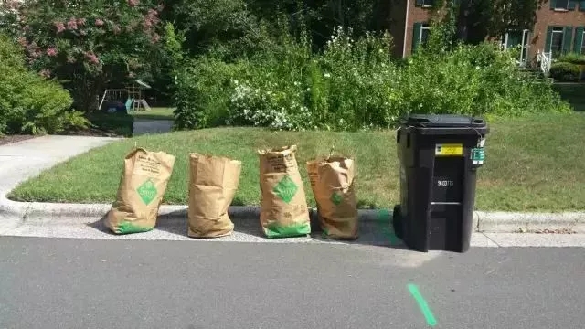 雜草與落葉由每個(gè)家庭成袋堆放在自家周?chē)?/p>