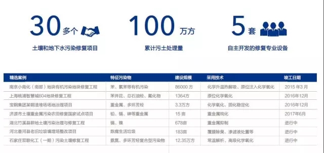 引進(jìn)日本、美國先進(jìn)修復(fù)技術(shù),結(jié)合國內(nèi)情況進(jìn)行自主研發(fā),擁有多項(xiàng)核心修復(fù)技術(shù)。廣泛適用于各類重金屬和有機(jī)污染場地。榮獲“國家重點(diǎn)環(huán)境保護(hù)實(shí)用技術(shù)”和“百強(qiáng)環(huán)保技術(shù)”等多項(xiàng)榮譽(yù)。