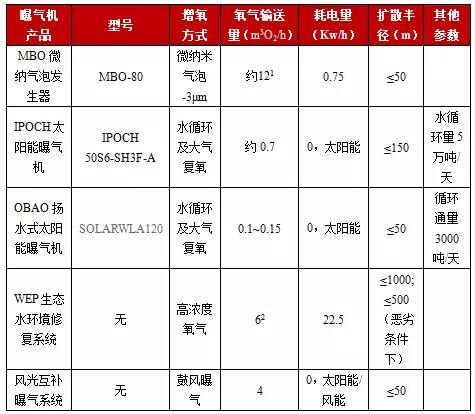 增氧曝氣技術產(chǎn)品的參數(shù)對比