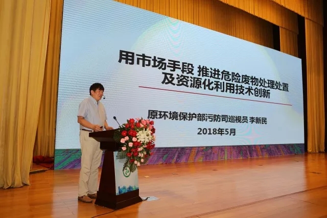 原國家環(huán)境保護部巡視員李新民以“用市場手段推進危廢綜合利用及資源化創(chuàng)新”為主題,從全國生態(tài)環(huán)境保護大會、固體(危險)廢物環(huán)境管理基本情況以及《環(huán)境保護稅法》三個方面進行詳細(xì)介紹。李司長指出“5.19全國生態(tài)環(huán)境保護大會”確定了我國全面建設(shè)小康社會的時間表和路線圖,環(huán)境治理和環(huán)境發(fā)展成為關(guān)系民生的重大社會問題。目前,固體(危險)廢物利用處置行業(yè)在無害化處置、資源化利用、新技術(shù)新裝備三方面快速發(fā)展。李司長從基本信息、發(fā)展階段、藍(lán)海市場三個方面詳細(xì)分析了行業(yè)管理基本情況,并從合規(guī)及監(jiān)管兩方面提出了行業(yè)展望。