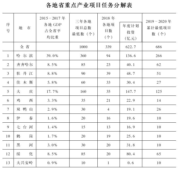 黑龍江省人民政府辦公廳關(guān)于印發(fā)全省重點(diǎn)產(chǎn)業(yè)項(xiàng)目建設(shè)三年行動(dòng)計(jì)劃(2018—2020年)的通知
