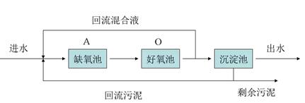 A-O工藝法也叫厭氧好氧工藝法,A是厭氧段,用于脫氮除磷;O是好氧段,用于除水中的有機(jī)物。該工藝的主要缺點(diǎn)有兩個(gè):一是由于沒有獨(dú)立的污泥回流系統(tǒng),從而不能培養(yǎng)出具有獨(dú)特功能的污泥,難降解物質(zhì)的降解率較低;二是若要提高脫氮效率,必須加大內(nèi)循環(huán)比,因而加大運(yùn)行費(fèi)用。此外,內(nèi)循環(huán)液來自曝氣池,含有一定的DO,使A段難以保持理想的缺氧狀態(tài),影響反硝化效果,脫氮率很難達(dá)到90%。