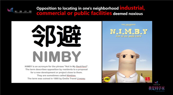 “鄰避”是什么呢?“鄰避” 實際上是音譯,英文叫:NIMBY,是五個英文單詞(Not In My Back Yard)的首字母的縮寫。所以有人中文做了一個非常好的翻譯叫:鄰避。