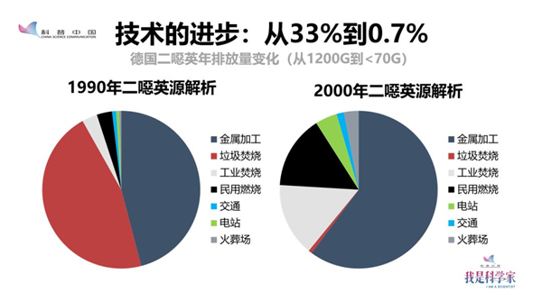 1990年到2000年間德國二噁英的源解析給我們提供了證據(jù):在1990年,全德國一年產(chǎn)生大概1200克的二噁英,其中來自垃圾焚燒的大概占33%。隨著技術(shù)的進(jìn)步和標(biāo)準(zhǔn)的提高,到2000年整個德國二噁英的排放量下降到低于70克,其中來自于垃圾焚燒裝置的排放只占了大概0.7%,這是一個非常低的比例。