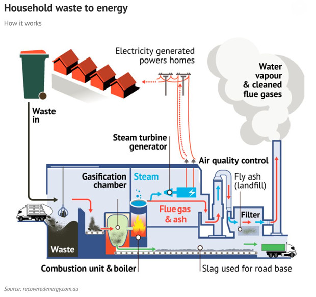 看到這些數(shù)據(jù)后,能源公司中的巨頭 Recovered Energy Australia (REA)有了辦法。決定在 Laverton North 的工廠,回收垃圾,利用垃圾焚燒發(fā)電的方法,為墨爾本西區(qū)解決垃圾數(shù)量眾多和臭氣熏天的問題。