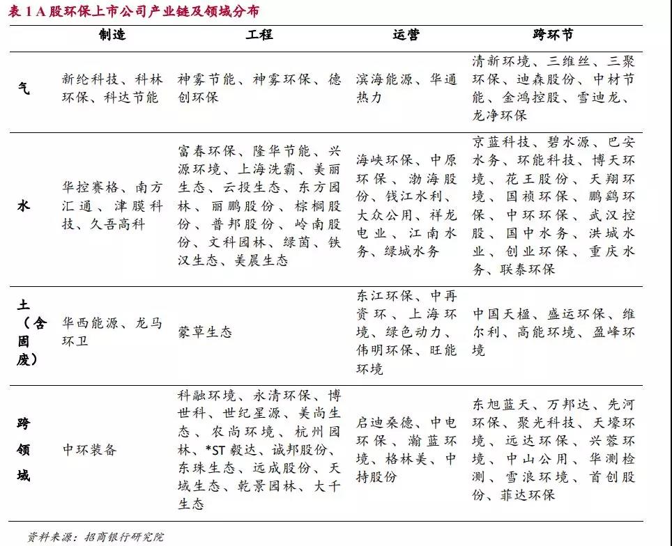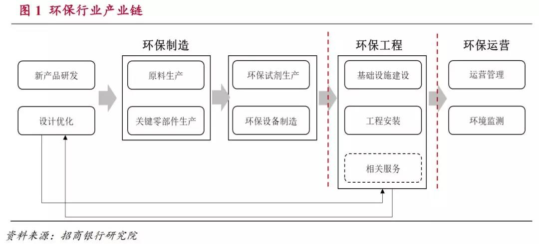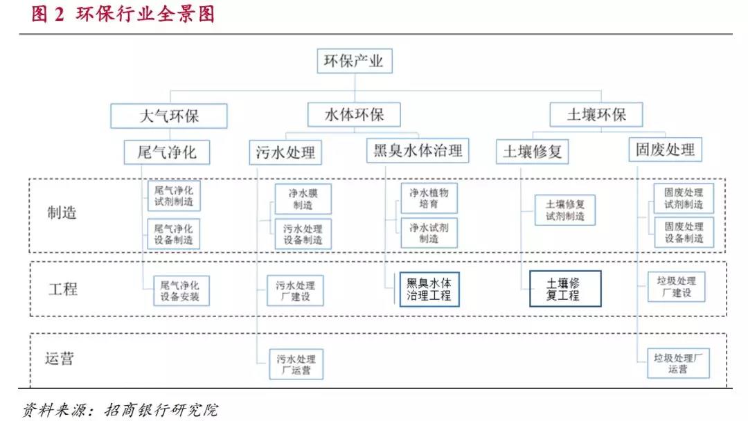環(huán)保產業(yè)除了按照環(huán)保領域可以分為氣、水、土三個方面以外,從產業(yè)鏈的角度還可以分為環(huán)保制造,環(huán)保工程和環(huán)保運營三個環(huán)節(jié)。