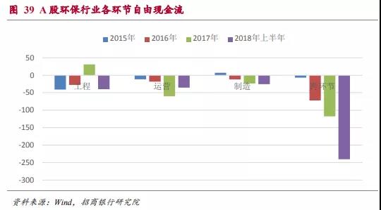 根據各環(huán)節(jié)自由現金流的分析,工程環(huán)節(jié)的自由現金流在2017年出現了轉正的情況,這很有可能與我國在工程環(huán)節(jié)推行PPP模式有關,這一模式對改善工程類企業(yè)的現金流有明顯的益處。而運營環(huán)節(jié)的自由現金流在2017年出現惡化,也是低于市場整體預期的。