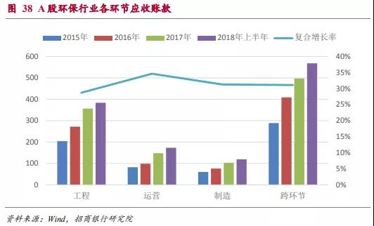 近年來A股環(huán)保行業(yè)應收賬款增速一直維持在30%及以上的增速,因此盡管環(huán)保行業(yè)整體的資產負債率水平還相對可控,但短期流動性的風險是需要重點關注的方面。