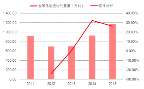全國危廢處置量(單位:萬噸)