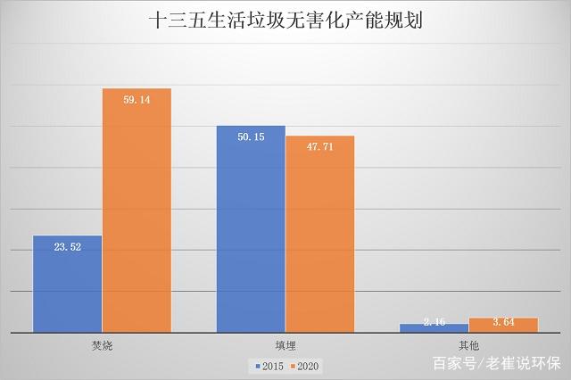 從無害化處理的角度來看,焚燒、填埋、其他方式的處置量分別為0.8億噸、1.68億噸、0.06億噸,占比32%、66%、2%。雖然最近兩年垃圾焚燒方式備受推崇,占比有所提升,但整體看填埋仍是無害化處理的主流。
