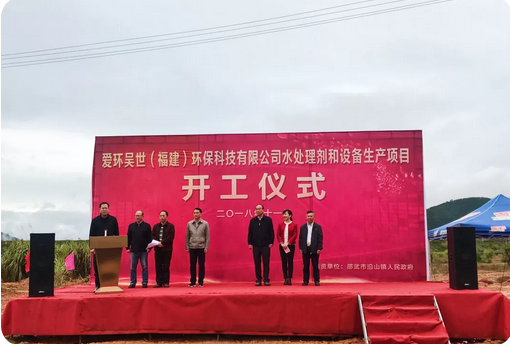 2018年11月21日,愛環(huán)吳世(蘇州)環(huán)保股份有限公司全資控股福建子公司在邵武金塘工業(yè)園區(qū)內(nèi)投資建設(shè)的環(huán)保型水處理生產(chǎn)和智能設(shè)備制造項目舉行開工奠基典禮儀式。