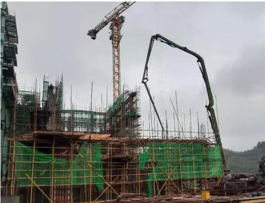 5、汽機房一期13.5米以上混凝土澆筑完,二期4米層混凝土澆筑完;門廳二層混凝土澆筑完;