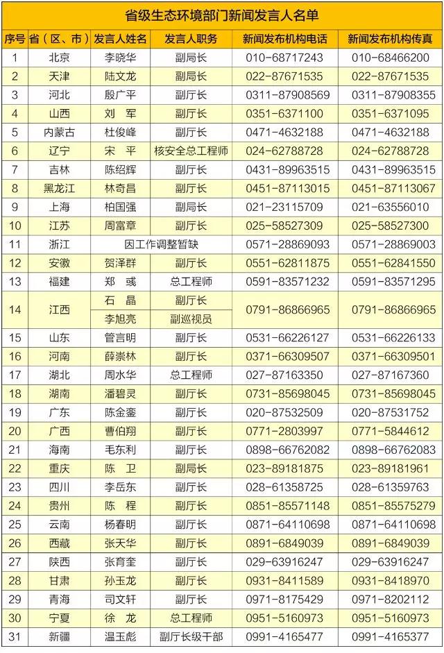 2019年1月21日,生態(tài)環(huán)境部更新發(fā)布31個省級生態(tài)環(huán)境部門新聞發(fā)言人名單,這是生態(tài)環(huán)境部第二次發(fā)布省級生態(tài)環(huán)境部門新聞發(fā)言人名單。生態(tài)環(huán)境部有關(guān)負(fù)責(zé)人表示,推進(jìn)例行新聞發(fā)布工作,保障公眾知情權(quán)是生態(tài)環(huán)境部堅定不移、常抓不懈的一項重要工作。2017年,生態(tài)環(huán)境部印發(fā)《關(guān)于進(jìn)一步加強環(huán)境信息發(fā)布工作...