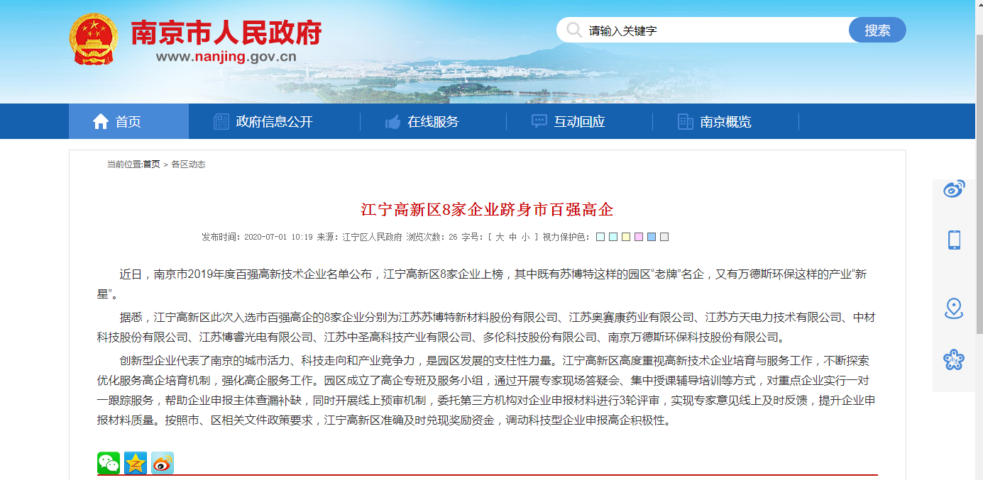 ——新的榮譽(yù)、新的“百?gòu)?qiáng)”、新的起航,萬(wàn)德斯入選“江蘇省百?gòu)?qiáng)創(chuàng)新型企業(yè)”、“南京市百?gòu)?qiáng)高新技術(shù)企業(yè)”近日,江蘇省科技情報(bào)研究與江蘇省科技發(fā)展戰(zhàn)略研究院分別發(fā)布了“南京市2019年度百?gòu)?qiáng)高新技術(shù)企業(yè)”名單、“2019年江蘇省百?gòu)?qiáng)創(chuàng)新型企業(yè)”名單,南京萬(wàn)德斯環(huán)保科技股份有限公司同時(shí)位列兩張榜單之中,成為...