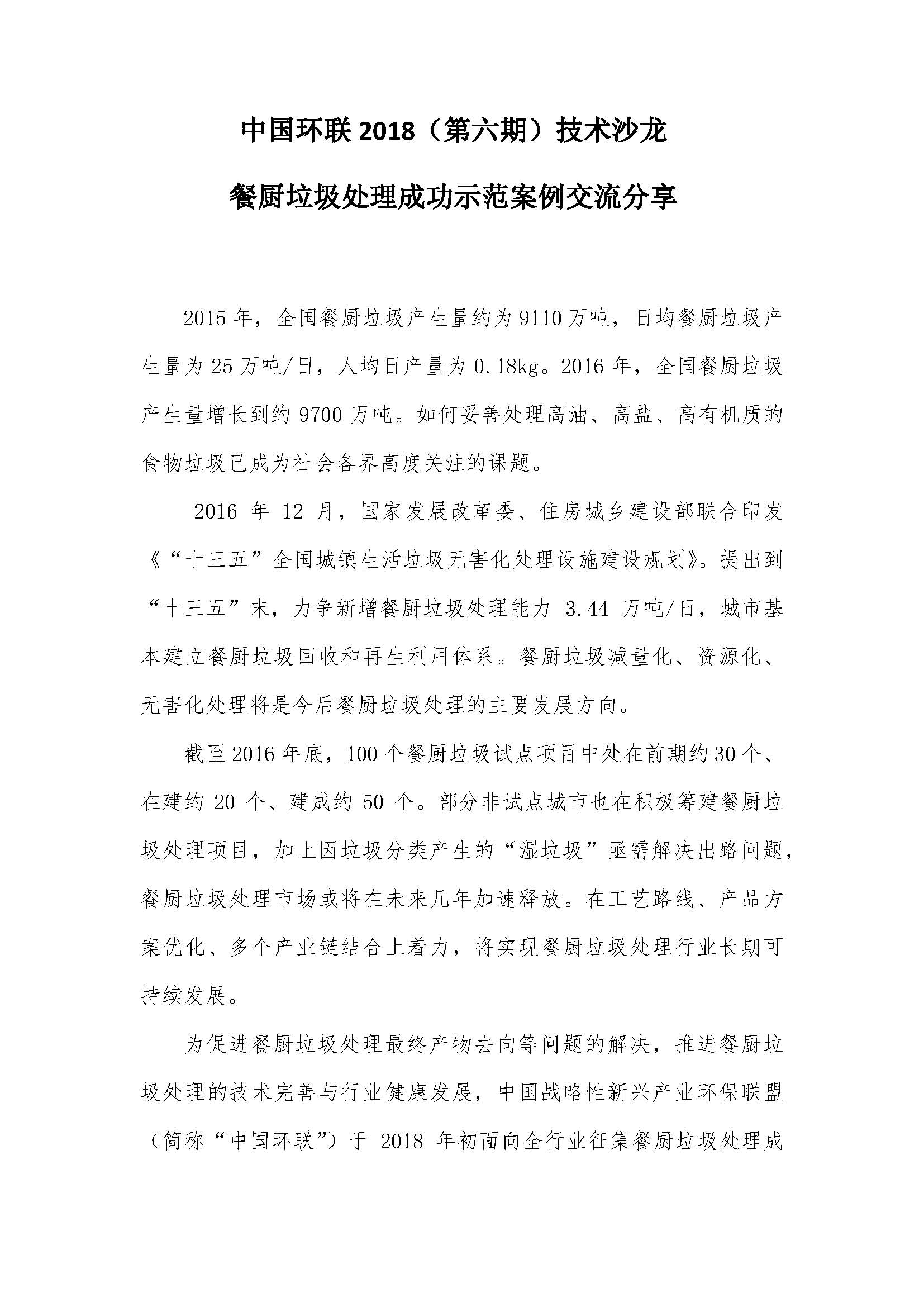 關(guān)于征集餐廚垃圾處理優(yōu)秀案例的通知2015年,全國餐廚垃圾產(chǎn)生量約為9110萬噸,日均餐廚垃圾產(chǎn)生量為25萬噸/日,人均日產(chǎn)量為0.18kg。2016年,全國餐廚垃圾產(chǎn)生量增長到約9700萬噸。如何妥善處理高油、高鹽、高有機(jī)質(zhì)的食物垃圾已成為社會(huì)各界高度關(guān)注的課題。2016年12月,國家發(fā)展改革委、...