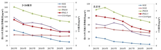 北京市 北京市第一季度PM2.5累計(jì)濃度為52微克/立方米,同比持平;可吸入顆粒物(PM10)、二氧化硫(SO2)、二氧化氮(NO2)累計(jì)濃度均同比下降20%以上;累計(jì)優(yōu)良天數(shù)為74天,同比增加10天,累計(jì)空氣重污染天數(shù)為7天。 2019年10月-2020年3月秋冬季攻堅(jiān)期間,PM2.5平均濃度為4...