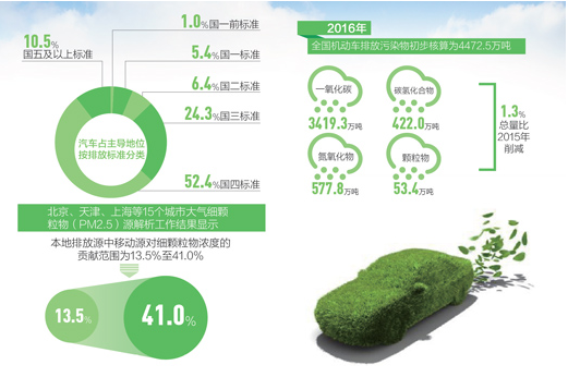 核心閱讀●年報顯示,2016年全國機動車排放污染物初步核算為4472.5萬噸,比2015年削減1.3%●我國已經(jīng)初步建立機動車環(huán)境管理新體系,實施了新生產(chǎn)機動車環(huán)保信息公開、環(huán)保達標監(jiān)管、黃標車和老舊車加速淘汰等一系列環(huán)境管理制度環(huán)保部日前公布的《中國機動車環(huán)境管理年報(2017)》顯示:我國已連續(xù)...