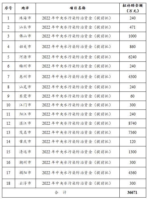 廣東省生態(tài)環(huán)境廳關(guān)于2022年中央水污染防治資金(提前批)、大氣污染防治資金(提前批)安排計(jì)劃的公示 經(jīng)廳黨組會(huì)議、廳務(wù)會(huì)議審議通過,我廳擬申請(qǐng)?zhí)崆跋逻_(dá)2022年中央水污染防治資金36671萬元、大氣污染防治資金44054萬元。 按照《廣東省省級(jí)財(cái)政專項(xiàng)資金管理辦法(試行)》(粵府〔2018〕120...