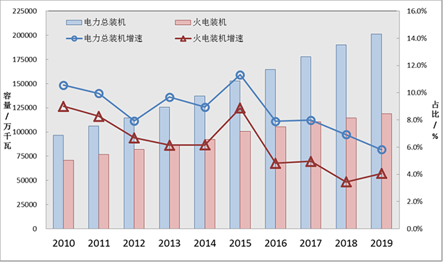 2020年度火電行業(yè)環(huán)境評估報告 帥偉 莫華 吳家玉 1.行業(yè)建設(shè)與運行 建設(shè)發(fā)展進度大幅放緩,裝機與發(fā)電量占比逐年降低。2015年以來,受政策調(diào)控與經(jīng)濟下行影響,火電裝機增速大幅降低,截至2019年底,火電裝機約11.90億千瓦,占電力總裝機比例首次降至60%以下,火電發(fā)電量50465億千瓦時,占...